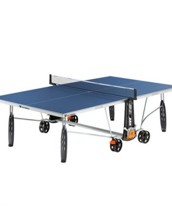 The Cornilleau 250S Crossover Outdoor Table Tennis Table features a resin laminate playing surface, as well as a frame composed of galvanized steel. Great bounce, solid top that enables this table to be suitable for indoor play as well!. The 250S Crossover Indoor/Outdoor Blue table is one of Cornilleau’s greatest values in terms of quality of play and price. Both the table tennis top and net system are designed with outdoor use in mind and will withstand the weather for years to come.